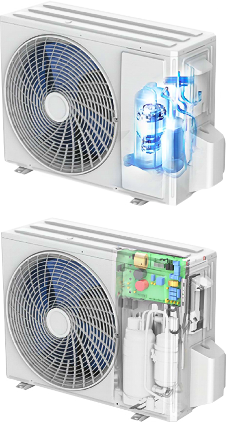 Il posizionamento verticale frontale della scheda riduce lo stress da vibrazione dell’unità durante il funzionamento. Tutta questa ingegnerizzazione comporta una riduzione delle dimensioni delle unità esterne di circa il 23,15 % rispetto i sistemi tradizionali in commercio.