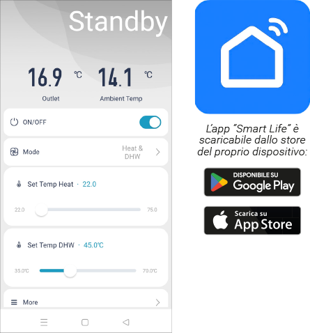 Per il prodotto è disponibile l’app “Smart Life” che, grazie alla connessione Wi-Fi, consente all’utente di regolare il prodotto attraverso lo smartphone.
